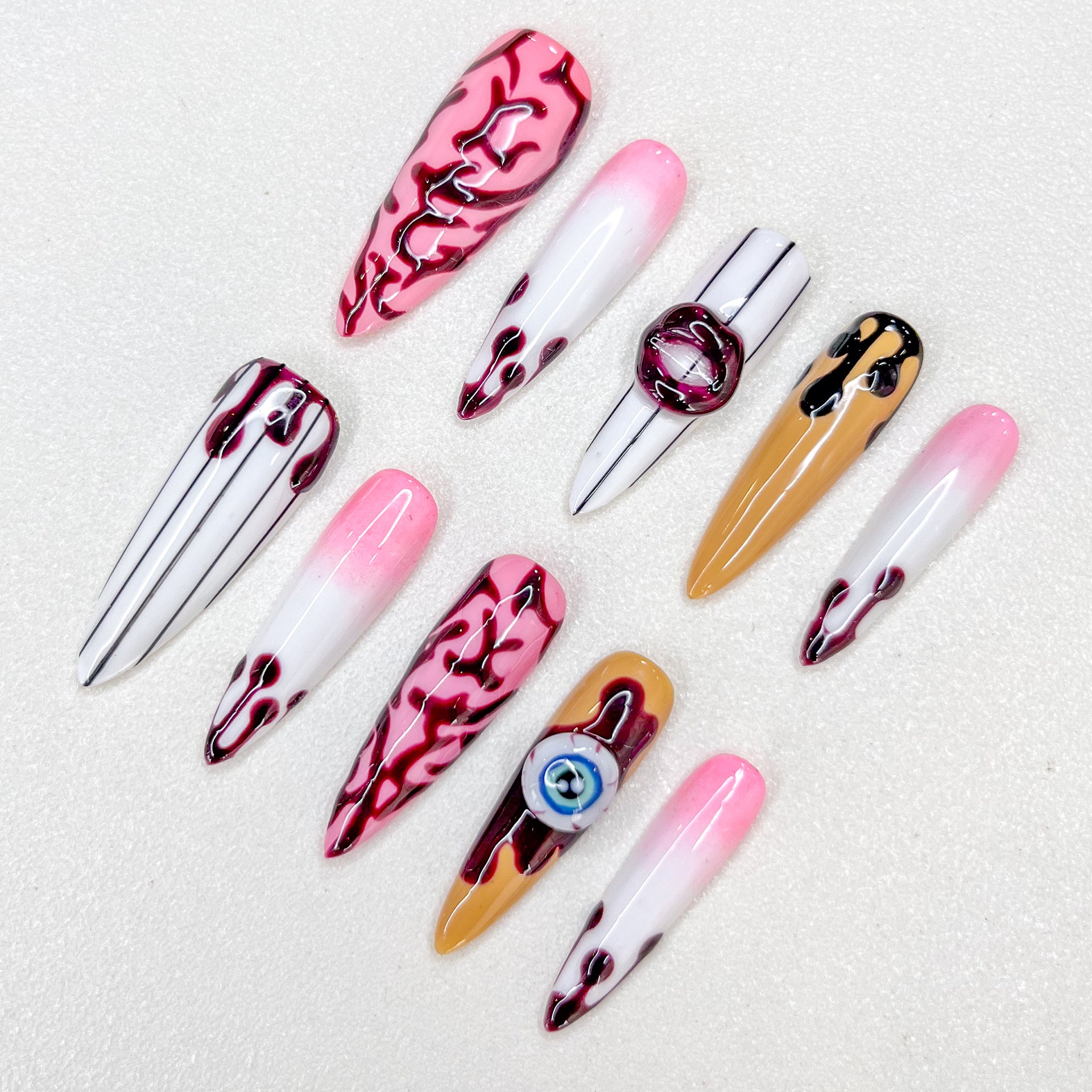 Handmade with care, please allow 2–3 days of production time. Get ready to turn heads this Halloween—order your Pink Brain Halloween Nails today! 🩸🎃🧠