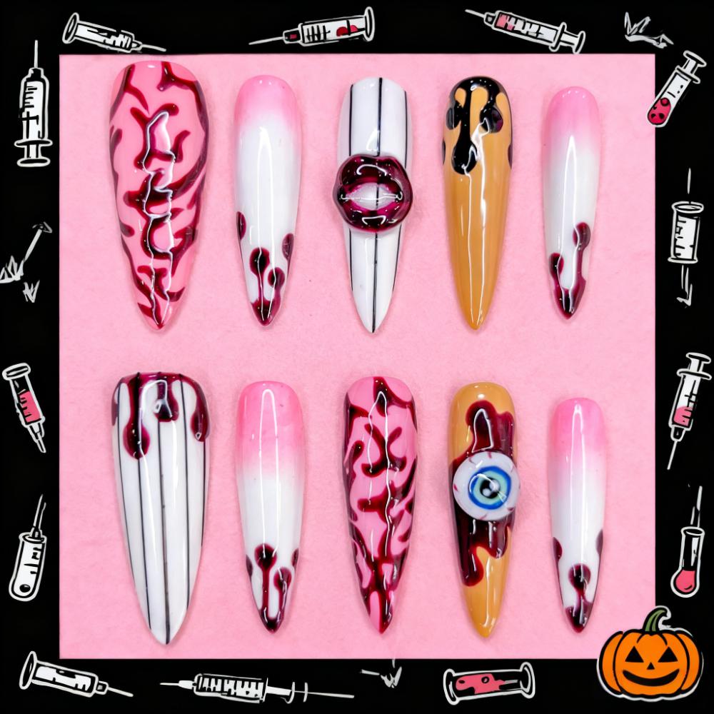 Whether you’re going for full-on spooky vibes or adding a statement accessory to your Halloween outfit, Pink Brain Nails are a must-have for 2025.